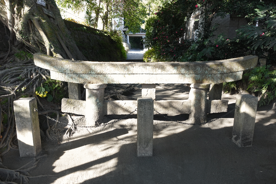 この鳥居は、1914年の大噴火による火山灰で埋まってしまった鳥居である。とてつもない量の灰が降ったことが想像できる。