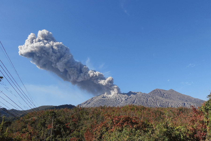 せっかくであるから桜島を見渡せる場所まで行こうと思って歩き、振り返ると、ちょうど小さな噴火があったようで大きな煙が出ているところであった。あれが継続したらとんでもないことになるが、この後すぐに止まってしまった。
