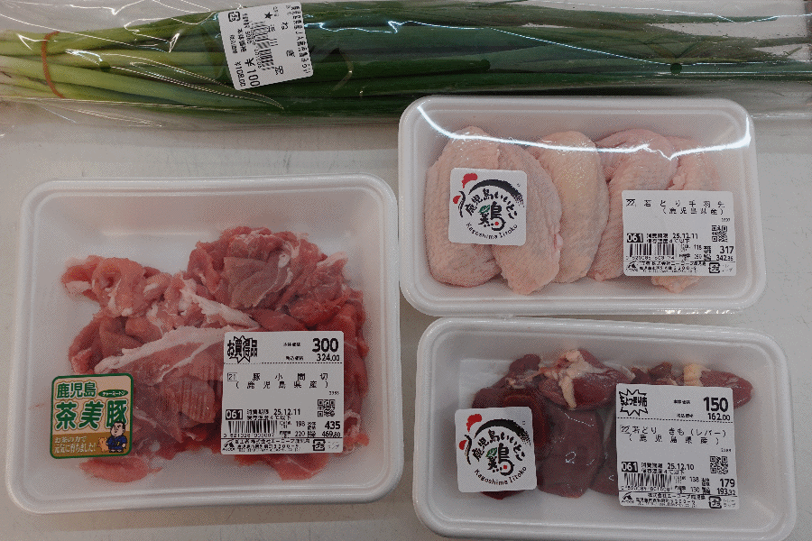 島の魚でもあるかと思ったが、残念ながら無かった。しかし鹿児島産の鶏肉や豚肉があったので、地元の野菜と共に買うことにした。