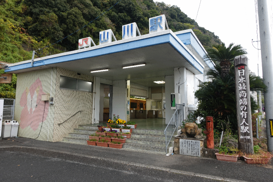 目の前にはJRの山川駅があり、ここは最南端の「有人」駅である(最南端のJR駅は西大山で、すべて含めて最南端は沖縄の赤嶺である)。