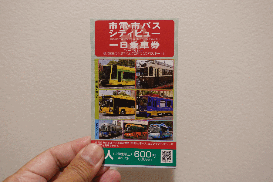 今日は鹿児島市内の観光であり、使用するのは市バスと市電の一日乗車券である。桜島も鹿児島市内であるためもちろん使用できるのと、観光用のバス「シティビュー」も利用できて、たったの600円である(3回も乗れば元が取れる)。