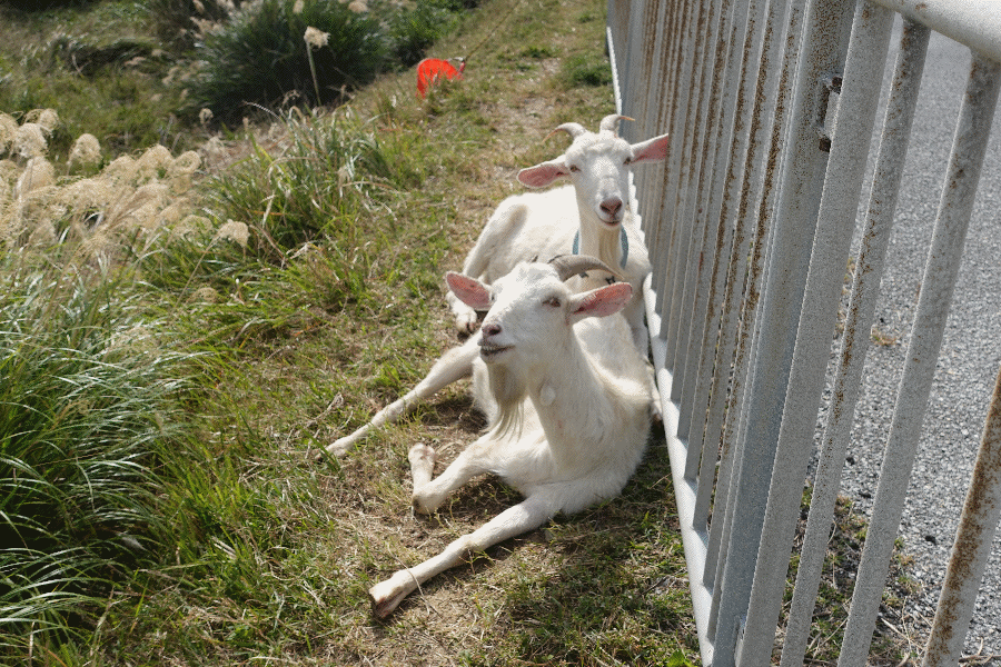 島の南部にある集落に近付いて行くと、ヤギのお出迎えである。首輪があるから飼われているのであろうが、いかにも沖縄という感じである。