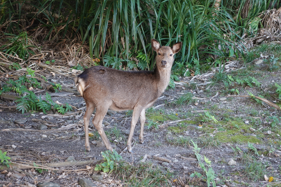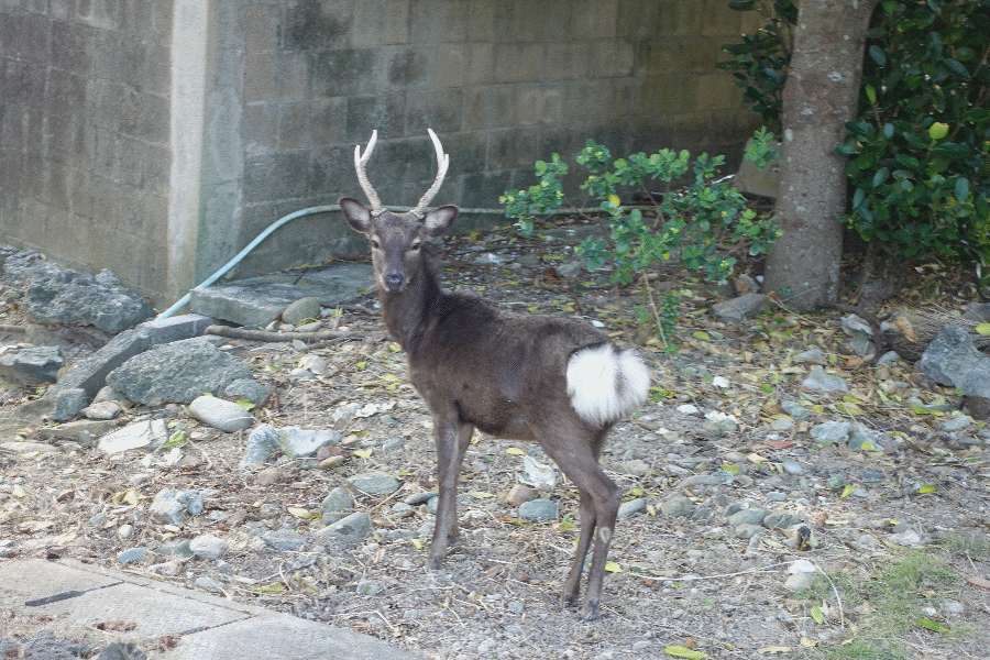 さて、主目的は終えたため戻るだけである。橋を渡って慶留間島に入ったが、物音がしたのでそちらを見ると、天然記念物であるケラマジカ(日本国内で最南限に棲息する野生ジカ)がいるではないか。ゆっくりと近付いて、撮影である。