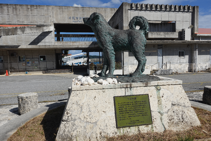 その後も歩いて港まで戻り、しばし休憩である。港の近くにはシロの像があるが、これは阿嘉島に住むシロが座間味島にいるマリリンに会うために泳いでいったという話に基づくものであり、それに関連して「マリリンに逢いたい」という映画も作られたことがある。
