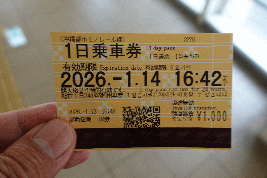 今日は、ゆいレールを使った市内観光である。ゆいレールの一日券は「24時間券」であるため、昨日の夕方に使った切符が、そのまま今日の夕方まで使えるのである(なお、朝から晩だけ使う場合は、この一日券(1,000円)よりも、タッチ決済(800円が上限)の方が安くなる)。