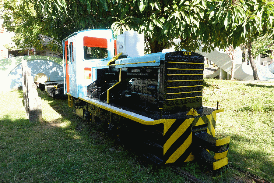 駅周辺を散策してから、反対側のモノレールに乗り込んだ。奥武山公園で下車して公園を適当に歩いて、川を渡って辿り着いたのが壺川東公園である。ここには南大東島で使用されていた機関車が置いてあるのだが(公園整備中に出てきたレールもある)、前回来たときは車両が荒れ放題であった。再塗装されたようで、少しは綺麗になっていた。