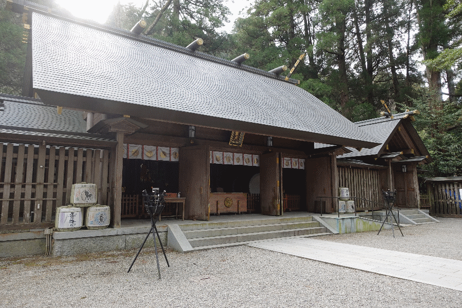 渓谷を散策してから歩いて駅方面に戻ったが、せっかく高千穂に来ているのであるから、高千穂神社に寄っていった。まだ朝ということもあり、誰もいない神社は新鮮であった。