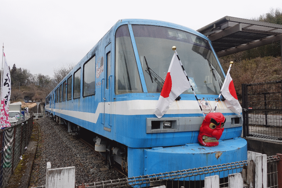 続いて乗るのは、同じく「ふれあいバス」である12時05分のバスである。それに乗り、坂の下バス停で下車した。目的は、保存されている高千穂線の車両である。
