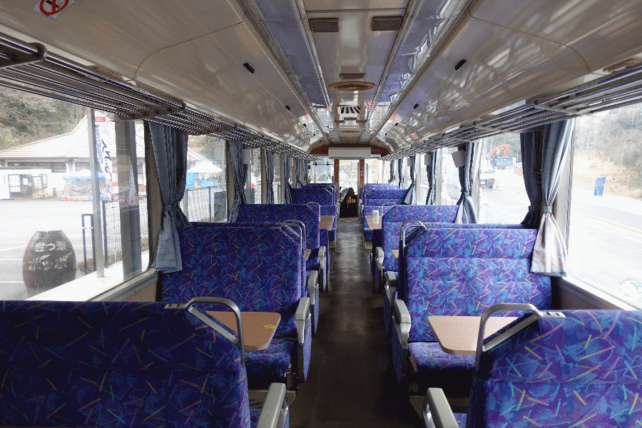 続いて乗るのが、9時36分発の岩戸行バスである。見た目は宮崎交通であるが、高千穂町の「ふれあいバス」として運行されているため、SUNQパスは使用できない(ただし、運賃は100円や200円など、格安である)。