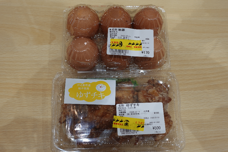 なぜここに来たのかというと、だいぶ前(15年以上前)に来た際に、確かここでウズラの姿焼きを買ったのである。何か珍しいものがないかと探したが、そういう変わったものは無かったものの、地元の卵を見付け、また地元の柚を使った唐揚げがあったので、それも買うことにした。