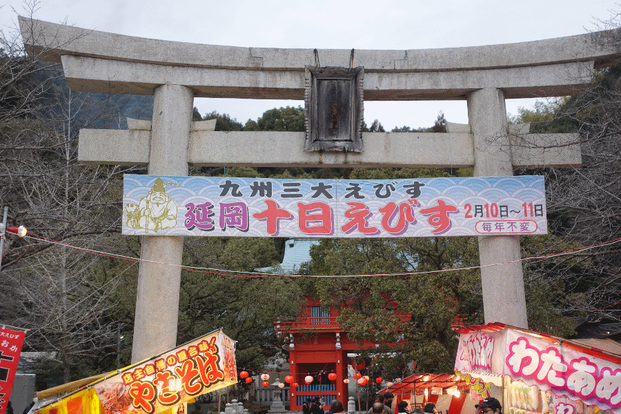 歩いてホテルに向かおうとすると、なんだか騒がしい。近づいてみると、たくさんの出店が並んでいる。どうやら今日明日と「十日えびす」開催日であり、今日が「本えびす」であるという。まったくの偶然であるが、こういう地元のイベントに出くわすのは、旅の醍醐味である。よって、賑わいを経由してホテルに戻った。
