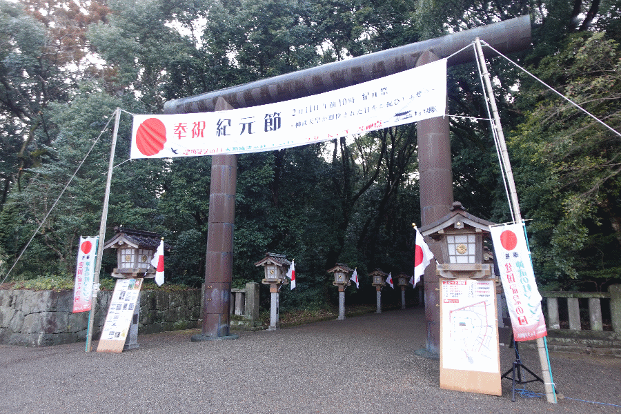 近付いて行くと、何やらイベントの準備中であった。よく考えたら(考えなくても)今日は建国記念日である。大きな神社で、イベントがあるのは不思議ではない。