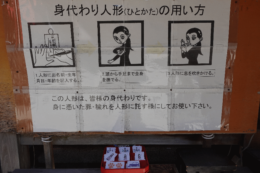 参拝を済ませたが、横を見ると「身代わり人形」というものがあった。面白そう、と書いては語弊があるが、珍しいのでやってみることにした。