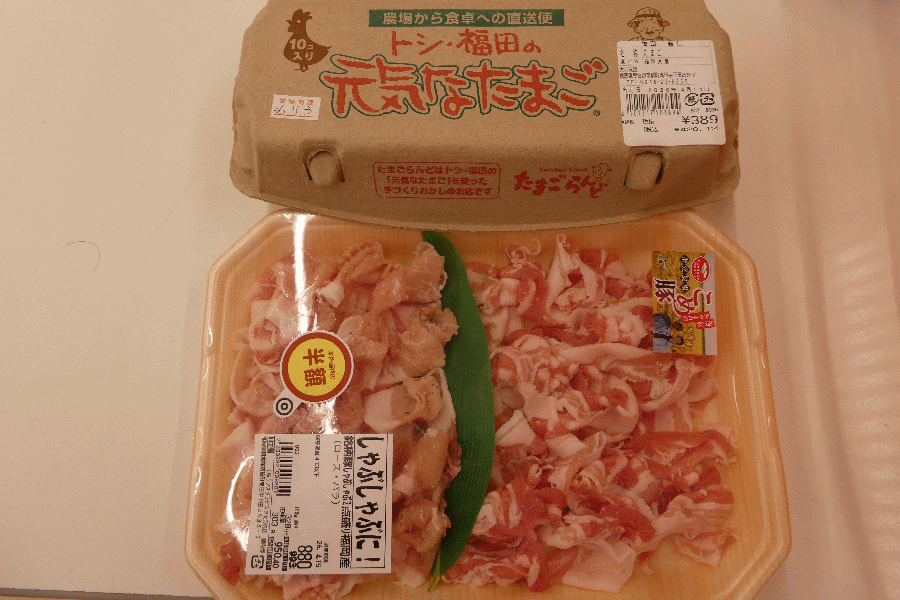 あれこれ展示を見終えてから、隣にスーパーがあったので入ってみた。地の卵と、半額になっていた福岡産の豚肉をゲット。