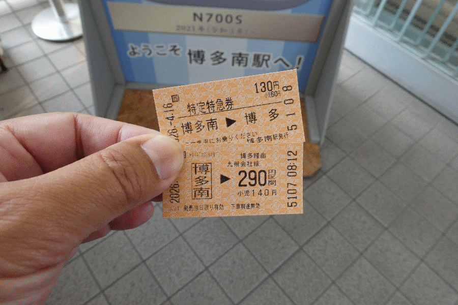 この路線は新幹線の車両基地までを在来線として利用できるものであり、博多までの特急券はたったの130円である。