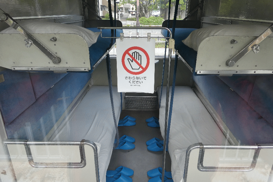 内部は幅52センチの三段ベッドであり、今見れば刑務所のようであるが、当時は「走るホテル」ともてはやされたものである。