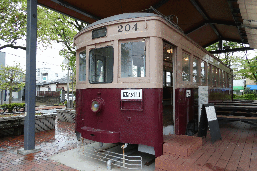 それに乗って、大牟田まで移動してきた。駅前に鎮座しているのは、喫茶スペースとして再利用されている市電である。